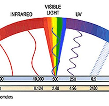 Infrared detects plant health: Near-infrared (NIR) radiation (0.7 to 1.3 μm) is reflected more by healthy vegetation than stressed or dead plants, making it a powerful tool for vegetation monitoring indices like NDVI.